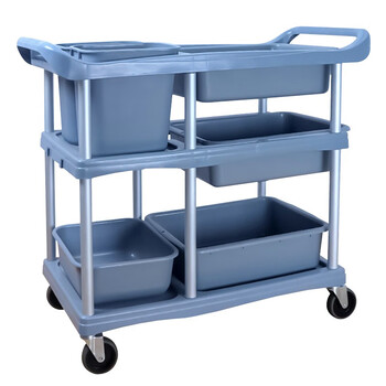 兰诗(LAUTEE)FW1021 三层推车收碗车带垃圾桶清洁推车 双把手推车4盆2桶