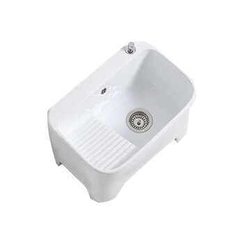 星期十阳台洗衣盆拖把池一体陶瓷拖布池自动下119+一键排污+喷枪龙头带溢水口56cm*38cm*40cm定制