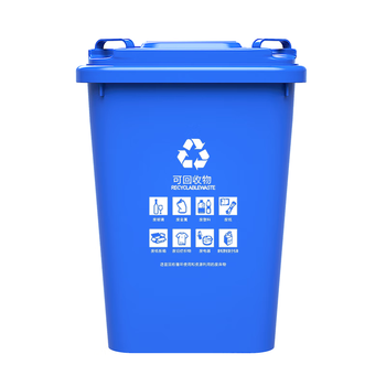 舒蔻(Supercloud) 大号塑料分类垃圾桶小区环卫户外商用带盖加厚垃圾桶可定制图案50L加厚蓝色分类可回收物