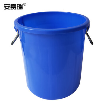 安赛瑞 大号塑料圆桶 大号圆形收纳桶 大容量水桶 食堂光盘环卫物业餐厨垃圾桶 50L 蓝色无盖24375