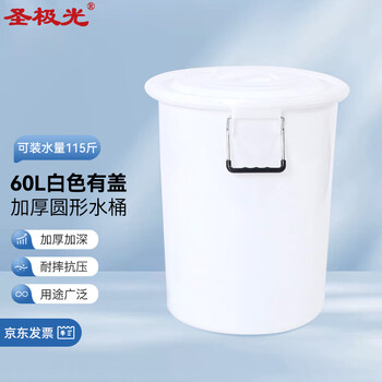 圣极光60L大水桶加厚塑料桶圆形大号后厨收纳桶可定制S01607带盖白色
