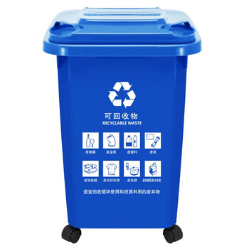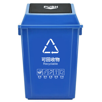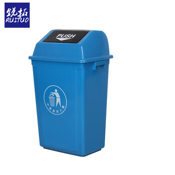 兰诗(LAUTEE)XDL-40B 新国标分类摇盖方形垃圾桶 物业环卫垃圾桶 40L蓝色-可回收物