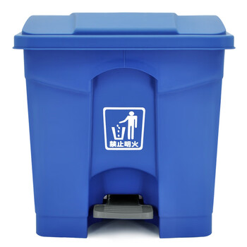 兰诗(LAUTEE)MJ18001 户外脚踏带盖垃圾桶 酒店宾馆商场翻盖果皮箱 30升蓝色