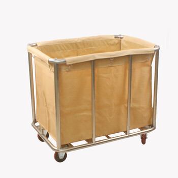 庄太太【加厚8管杏色长方形】布草车客房服务车酒店加厚不锈钢带扶手洗衣房收集脏布草回收推车