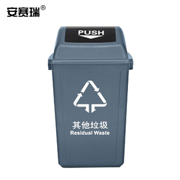 安赛瑞 摇盖垃圾分类垃圾桶 新国标加厚垃圾分类垃圾桶 40L 环卫户外果皮垃圾桶 灰色 (其他垃圾)27260