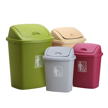 安赛瑞 摇盖垃圾分类垃圾桶 商用干湿分类垃圾桶 塑料摇盖式垃圾桶 环卫户外果皮垃圾桶 30L 红色 24355