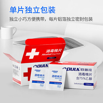 欧普拉 OPULA 消毒棉片 可出口CE/FDA双认证 独立包装75%酒精棉片消毒湿巾 规格3*6 100片/盒装 中文包装