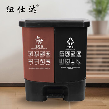 纽仕达/30L升户外双桶分类垃圾桶干湿分类分离上海商用脚踏拉圾桶 咖灰色(干垃圾/湿垃圾)