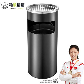 领象 不锈钢烟灰缸酒店大堂垃圾桶立式宾馆带内桶商场桶箱电梯口垃圾桶吸灰桶烟灰柱灭烟桶 黑色 圆形