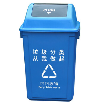 安赛瑞 摇盖垃圾分类垃圾桶 商用干湿分类垃圾桶 塑料摇盖式垃圾桶 环卫户外果皮垃圾桶 60L 红色 24363