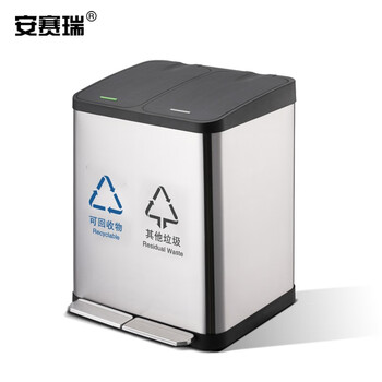 安赛瑞 不锈钢分类脚踏式垃圾桶 15L×2 酒店办公干湿垃圾分类桶 学校商场电梯口室内外连体分类垃圾箱 700181