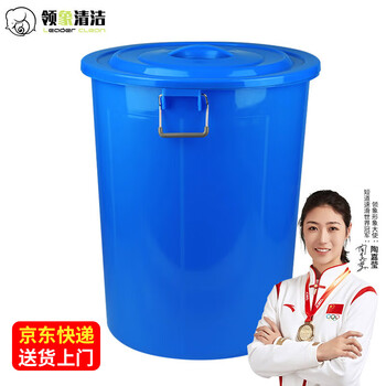 领象 大水桶塑料桶 圆形收纳桶大容量水桶酒店厨房工业环卫物业大号垃圾桶 带盖100L蓝色