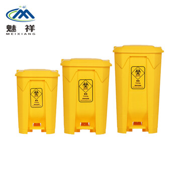 魅祥 脚踏翻盖式垃圾桶 加厚医疗塑料桶 黄桶黄盖68L