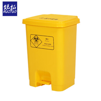 锐拓医疗废物桶加厚黄色脚踩废弃口罩回收垃圾桶带盖诊所医院用垃圾桶30L医疗脚踏款