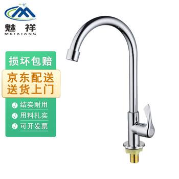 魅祥 单冷厨房洗菜盆水咙头 万向旋转360°单把单孔4分水咙头 合金立式单冷大弯