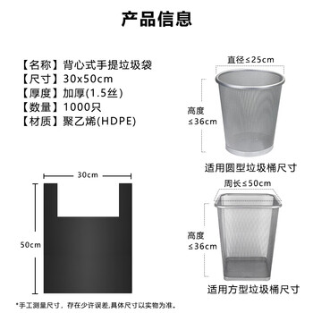 共泰 背心式手提垃圾袋 办公分类方便袋 黑色加厚防刺破塑料袋 PE材质 30*50cm 1.5丝 1000只装