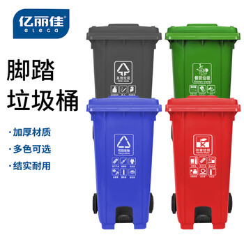 亿丽佳加厚物业小区公用室外分类塑料带盖医疗环卫户外垃圾桶大号商用脚踏带轮垃圾箱100L 5个一组