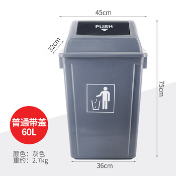 苏识 YJ-A148 40升带盖加厚带摇盖大号户外垃圾箱创意办公商场酒店翻盖桶(计价单位:个)卡其色
