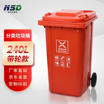 纽仕达/新国标240L带轮分类垃圾桶商用户外环卫室外大号带盖翻盖大垃圾桶/有害垃圾【可免费印制LOGO】