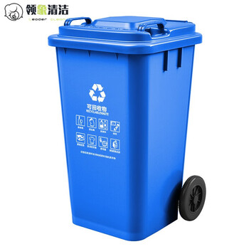 苏识 YJ-A062 户外大号加厚垃圾桶 240升带轮带盖挂车款分类标识 蓝色