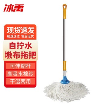 冰禹 BY-3086 棉纱吸水拖把 可伸缩杆干湿两用拖把 自拧水墩布拖地清洁拖把 带杆拖把