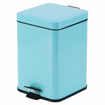 益美得 LK1023 脚踏式垃圾桶方形卫生间脚踏带盖卫生桶办公室纸篓 金属烤漆蓝色12L