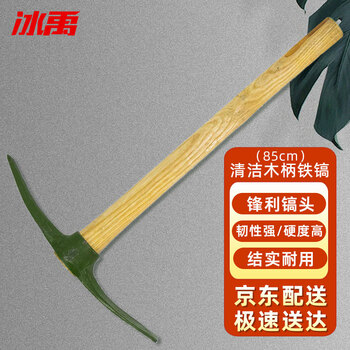 冰禹 BY-348 工业清洁木柄铁镐 铲土镐军绿色铁镐 57cm小军镐
