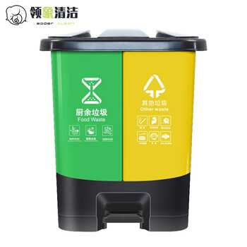 领象 分类垃圾桶大号厨余餐厨环卫脚踏垃圾分类垃圾桶 绿色黄色 厨余垃圾+其它垃圾20L
