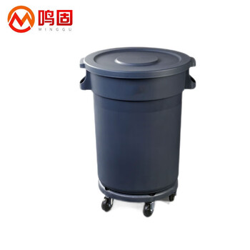 鸣固 清洁垃圾桶 滑轮带盖垃圾桶 带底盘环卫布草桶灰色 120L滑轮桶带底盘 ZJ1053