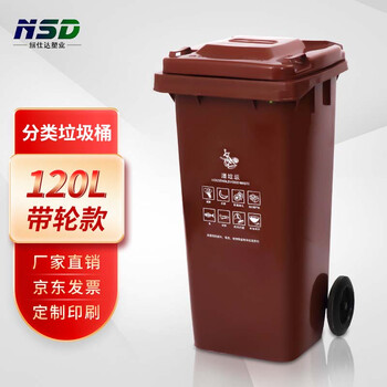 纽仕达 上海分类垃圾桶干湿分离商用户外环卫拉圾桶咖啡色带轮桶120L 棕色咖啡色湿垃圾 【可免费印制LOGO】