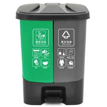圣极光分类垃圾桶60L餐饮用厨余垃圾桶脚踏式绿灰色可定制G2229
