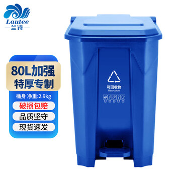 兰诗(LAUTEE)YJ-80 新国标脚踏垃圾桶 物业环卫分类垃圾桶 80L-蓝色可回收物
