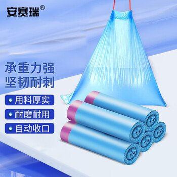 安赛瑞 抽绳垃圾袋 自动收口垃圾分类垃圾袋 45×50cm 10卷装 手提一次性 蓝色 700912