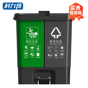 科力邦(Kelibang) 分类垃圾桶 大号脚踏式60L厨余其他垃圾桶带盖双桶环卫户外垃圾桶翻盖 KB1200 绿灰