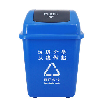 兰诗(LAUTEE)LJT2217 蓝色分类款摇盖垃圾桶 40L 户外桶