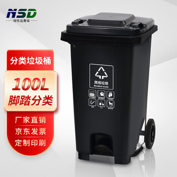 纽仕达/新国标100L脚踏带轮分类垃圾桶商用户外环卫室外大号带盖大垃圾桶/其他垃圾【可免费印制LOGO】