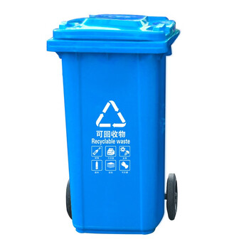 益美得 加厚户外分类垃圾桶酒店大号两轮室外果皮箱 240L蓝色(可回收物)