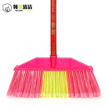 兰诗(LAUTEE)SB-0318 扫把笤帚环卫物业学校木柄塑料丝扫把 红斜杆硬毛窄头-10个装