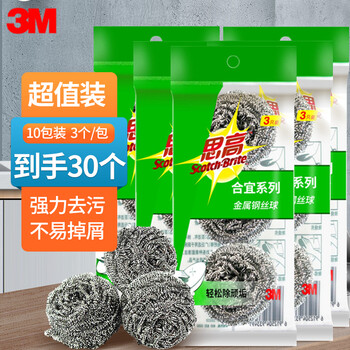 3M 思高合宜金属钢丝球厨房清洁洗碗刷锅强力去污XY003837743 10包(3个装)定做