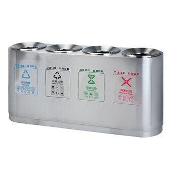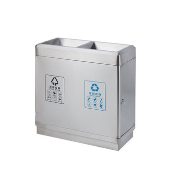 庄太太【A267分类垃圾桶】不锈钢分类垃圾桶环保可回收不可回收果皮箱户外室内物业二分双筒