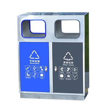 者也 户外分类垃圾桶不锈钢果皮箱室外公园小区物业环卫垃圾箱大号商用 B2023【两分类】不锈钢