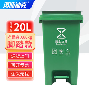 海斯迪克 HKW-190 塑料垃圾桶 分类连体脚踏垃圾桶 绿色20L厨余垃圾
