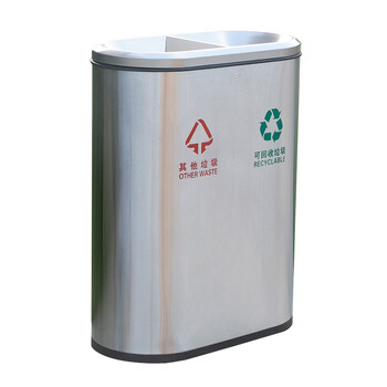 兰诗(LAUTEE)DB6026 带盖翻盖干湿分离分类大号垃圾桶不锈钢户外回收箱 二分类桶GPX218X