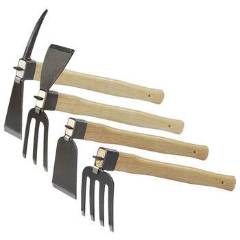 兰诗(LAUTEE)WY4088 木柄小锄头园艺工具除草耙子 加厚全冈锄头四件套