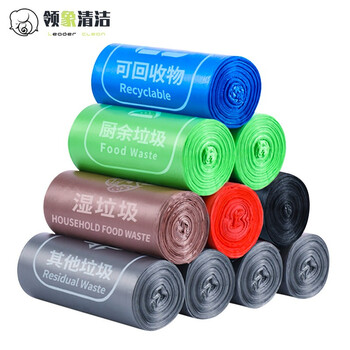 领象 可降解分类垃圾袋 加厚平口式医疗商用垃圾袋45*50可回收物20只/卷 蓝色