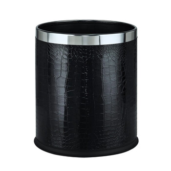 益美得 CY118 圆形客房垃圾桶 酒店卧室无盖直投果皮桶美观防漏阻燃双层皮革不锈钢圈 房间桶 黑色鳄鱼纹10L