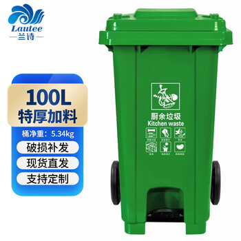 兰诗(LAUTEE)LJT2215 绿色分类脚踏100L垃圾桶 大号垃圾桶