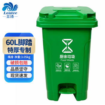 兰诗(LAUTEE)XD-60 新国标户外脚踏分类垃圾桶 酒店物业果皮箱 60升绿色-厨余垃圾