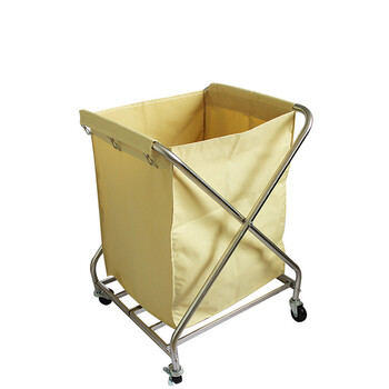 庄太太【X形可折叠】布草车客房服务车酒店加厚不锈钢带扶手洗衣房收集脏布草回收推车