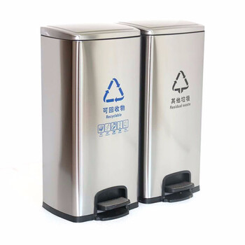 益美得 LK1050 不锈钢脚踏垃圾桶室内外分类果皮箱脚踏带盖回收箱 双桶(可回收+其他)